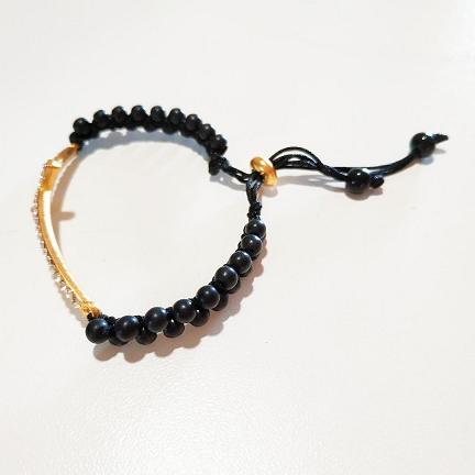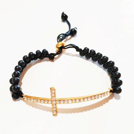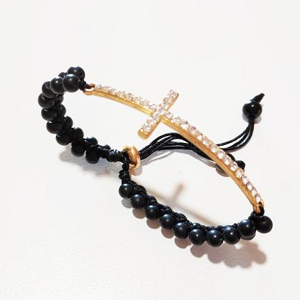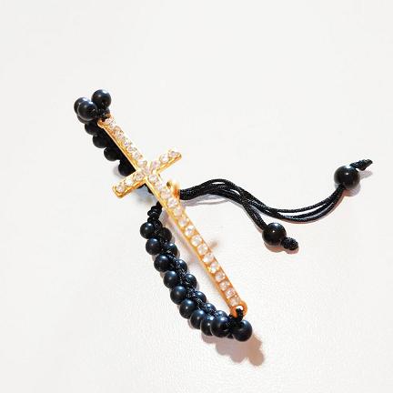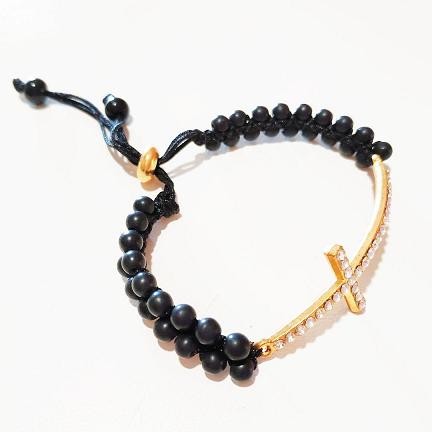 Βραχιόλι με σταυρό δεμένο με ημιπολύτιες πέτρες μαύρο όνυχα